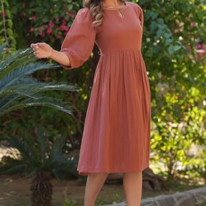 Women’s Cotton Blend Shirt Below The Knee Casual Dress